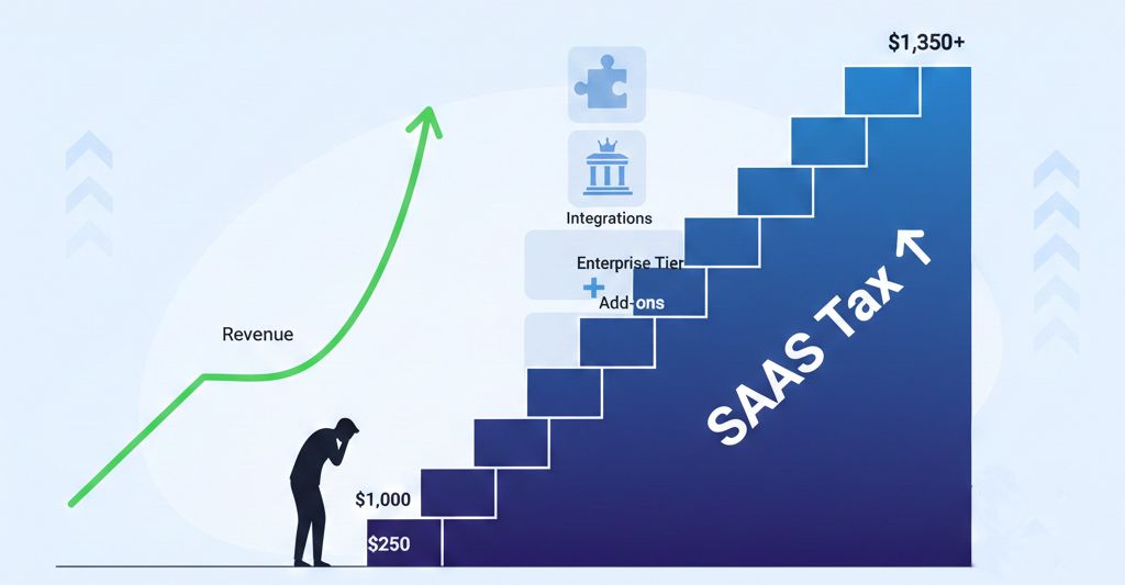 The financial model of SaaS app builders is counter-intuitive for scaling companies. As your needs become more complex with growth—requiring premium integrations or developer tools—you are forced into expensive Enterprise tiers. This is the "SaaS Tax."