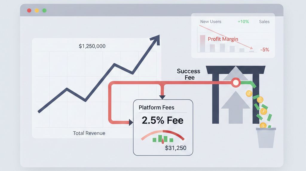 Many SaaS platforms impose a "success fee," a variable cost calculated as a percentage of your app's revenue (typically 1.75% to 2.5%) that functions as a direct tax on your growth. This fee is charged on top of your fixed monthly subscription, creating a fundamental conflict of interest: the platform’s financial model actively undermines your margin health.