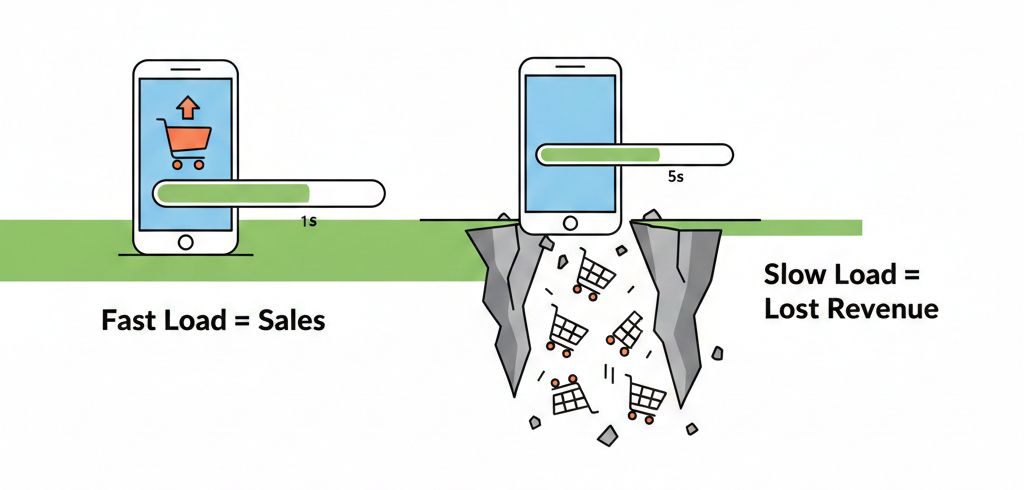 The core statistic is staggering: for every one-second delay in mobile page load time, conversion rates drop by approximately 20%. This penalty accumulates with breathtaking speed. Research shows that 53% of mobile users will abandon a site completely if it takes more than three seconds to load. In practical terms, this means for every $100,000 you spend on ads, $53,000 is incinerated before a user even sees a single product.
